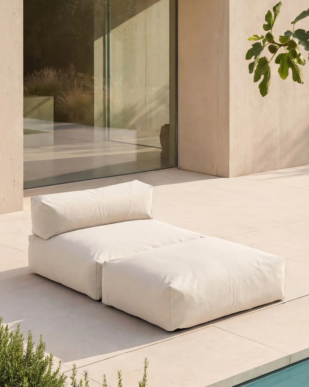 - Das Poolsofa besteht aus Matratze und Rückenkissen